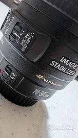 Teleobiettivo Canon 70-300 con stabilizzatore. Senza alcun graffio, con paraluce e custodia inclusi