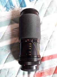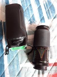 Obiettivo f/70-210mm Polar (supporto x Canon) 1:4.0 Manual Focus, con vetro protettivo Tamron 55mm e custodia protettiva in pelle.