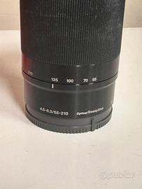 Vendo Sony E 55-210 mm f4.5-6.3 OSS per formato APS-C con messa a fuoco tramite motore AF e stabilizzatore di immagine presente.