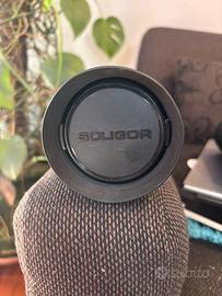 Teleobiettivo vintage Soligor 85–205 mm, messa a fuoco manuale, attacco Canon FD (indicato come C/FD sull’obiettivo).