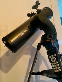 Celestron 31145 NexStar 130SLT Telescopio riflettore newtoniano computerizzato portatile con montatura a forcella a sgancio rapido. Perfetto, usato solo due volte sul terrazzo di casa. Prezzi dei prodotti nuovi: Telescopio: 650 euro Telecamera astronomica: 300 euro Oculare zoom: 100 euro Piu accessori extra. Quindi ottimo prezzo per questo kit completo per astrofotografia. Facile da settare. Pronto all’uso. Includo molti acessori tra cui adattatori vari per astro fotografia: - Un oculare Celetron Zoom 8-24 mm - SVBONY SV705C Camera astonomica a colori usb3 8 mega pixel alta sensibilità (solo lei costa 300 euro) Telescopio con montatura altazimutale monobraccio computerizzata GO-TO Nexstar SLT. Comprende vano batterie (per 8 batterie tipo AA non incluse), pulsantiera NexStar aggiornabile via web, con funzione di allineamento facilitato SkyAlign e database di oltre 4000 oggetti celesti. Il Nexstar 127 SLT è adatto per un prevalente uso visuale, ma consente le riprese fotografiche e video. Può essere usato anche per osservazioni terrestri. Vendo in scatola originale.