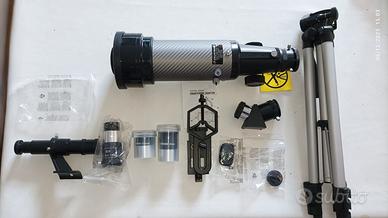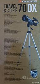Telescopio Celestron Travelscope 70DX, come nuovo, leggero e trasportabile, dotazione di serie, manuale d'istruzioni multilingue compreso italiano, supporto per smartphone con telecomando bluetooth che attiva la fotocamera del telefono da remoto.