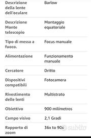 telescopio, per caratteristiche vedi foto,solo di persona , usato pochissimo
