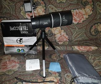 Piccolo telescopio utilizzabile anche tramite accessorio con telefono ,provvisto di treppiede ,custodia e laccio x trasporto nuovo con scatola