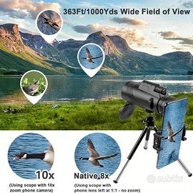 Telescopio Monoculare HD 8x42 - HD 10x40 - HD 12x42 - HD 16x52 - Compatto e Portatile per Campeggio, Escursionismo, Birdwatching, Concerti ed Eventi Sportivi. idinei anche per l'osservazione degli animali.