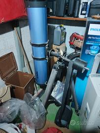 vendo per inutilizzo telescopio riflettore Sky-Watcher modello 900 130 completo di oculari vari, lente Barlow,lente raddrizzatrice e filtro lunare. il telescopio è in buone condizioni con specchi perfetti ma visto il trasporto giù al garage dopo il trasporto va sicuramente collimato. presente anche inseguitore, montatura originale E-Q2 e treppiedi con portaoggetti e peso di stabilizzazione. scatola mancante quindi per il ritiro andrà caricato così come proposto.