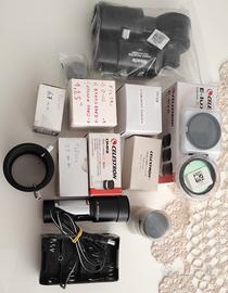 Oculari di vari diametri ( marche Celestron e Meade.. compreso un 40 mm della Celestron) e un spianatore di campo.