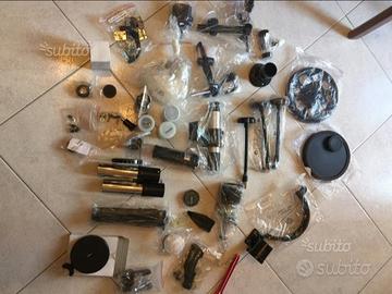 vendo telescopio usato pochissime volte completo di: n° 80 fascicoli con raccoglitori, atlante astronomico, diario astronomico, valigia robusta per trasporto telescopio, sacco per trasporto telescopio senza essere smontato, telo per coprire telescopio, valigetta per le lenti, sgabello in legno. Scheda tecnica del telescopio Star Observer: – Riflettore Newtoniano D114/F1000 con montatura EQ3 Advanced – Diametro obiettivo 114 mm – Lunghezza focale 1000mm – Potere di risoluzione 1 secondo d’arco – Potenza raccoglitrice della luce, 256 volte quella dell’occhio umano – Magnitudine limite 12 – Rapporto focale F/8,7 – Tubo in metallo lunghezza 500mm – Montatura e contrappeso in ghisa – Treppiedi in alluminio regolabile in altezza Accessori: – Copriottiche – Filtro solare in Mylar a tutta apertura – Filtro lunare – 12 filtri colorati – Adattatore per macchina fotografica digitale – Bussola – Cercatore 6×30 – Oculari Plossl: 25 mm (40 ingrandimenti) e 12,5 mm (80 ingrandimenti) – Oculari Kellner (diametro 31,8 mm): 20 mm (50 ingrandimenti), 9 mm (110 ingrandimenti) e 6 mm (166 ingrandimenti) – Lente di Barlow 2x – Raddrizzatore d’immagine 1,5x – Valigetta porta accessori – Sedia astronomica Accessori opzionali – Motore orario in ascensione retta per seguire gli oggetti celesti – Oculare digitale per fotografia