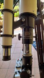Stupendo vintage,completo di tutti gli accessori,ottica perfetta,stelle a capocchia di spillo,lenti perfette,non un graffio muffe,etc.viene fornito con tutto il suo corredo originale. -lente di Barlow 0,965 -filtro solare sia per riflessione,sia da avvitare all'oculare -filtro lunare -5 oculari di serie 0,965 -diagonale originale 0,965 -prisma di porro -treppiede con vano portaoculari illuminato -cercatore -flessibili,contrappeso,montatura tenuta perfettamente .Il tubo non è mai stato aperto,ne tolti i diaframmi.Il focheggiatore è privo di giochi e impuntature.Preferirei ritiro a mano ma posso spedire.Se interessati invio foto via mail o wsapp,Il pacco pesa sui 18 kg