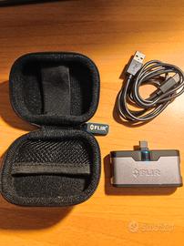 Vendo termocamera, cioè telecamera per fare foto e filmati al calore. Versione compatibile con telefoni Android, con presa USB C come si vede dalle foto. NO IPHONE NO MINI USB. Telecamera perfettamente funzionante tramite app, usata pochissimo (servita per tracciare i tubi del riscaldamento). Completa, come da foto, di cavo di ricarica e custodia. Regolazione della lunghezza dello spinotto tramite rotellina.