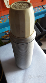 vecchio Thermos Original in metallo con tappo originale e bicchiere in plastica rigida avvitabile al thermos stesso. Misure cm.26 altezza diametro cm.7,5.