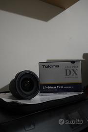 Titolo: Tokina 11-16mm f/2.8 PRO DX con garanzia RCE residua Prezzo: 300 (trattabili) Vendo Tokina 11-16mm f/2.8 PRO DX in ottime condizioni. Obiettivo grandangolare luminoso, ideale per paesaggi, interni e astrofotografia. ✔ Lenti pulite ✔ Autofocus perfetto ✔ Completo di tappi e paraluce originali ✔ Ancora in garanzia RCE ✔ scatola e garanzie Vendo per passaggio a full frame. Preferibilmente consegna a mano Lecco,Monza,Merate. Scrivetemi per info e foto