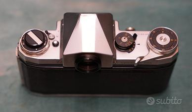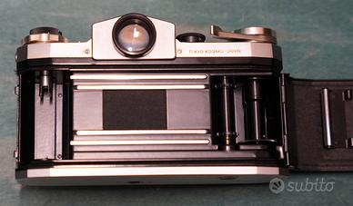 Rara reflex della Topcon modello R con pentaprisma intecambiabile. La reflex é perfettamente funzionante e di ottimo aspetto salvo il tetuccio del pentaprisma che presenta dei segni. La visione e´perfetta dato che la parte ottica é in perfetto stato. Si montano le ottiche con attacco a baionetta tipo Exakta.