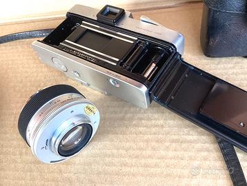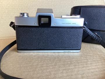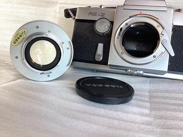 Reflex manuale Topcon RE-2 bella e funzionante con pregiata ottica Auto Topcor RE 58/1,8.Scatta correttamente a tutti i tempi,esposimetro funzionante,guarnizioni ok,lenti limpide prive di difetti,diaframma libero e scattante,messa a fuoco fluida regolare,ottima estetica vedere foto.Originali tappo obiettivo e bella borsa pronto con tracolla,batteria nuova tipo 625 compresa.