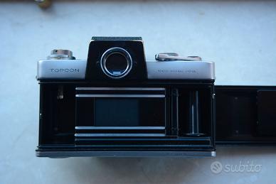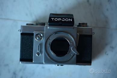 topcon re super argento, con mirino super dm, in ottime condizioni estetiche e meccanicamente in regola. Ha un piccolo segno sulla calotta di destra visibile in foto e l'esposimetro, inserita una batteria, non risponde alla luce. La meccanica funziona perfettamente; i tempi di scatto sono precisi, il sistema del diaframma automatico e dello specchio funzionano correttamente. L'annuncio è per il solo corpo macchina, disponibile in vendita anche il 28mm 2.8 topcon auto, che si vede in foto. In caso di acquisto in blocco si farebbe uno sconto sul complessivo. Non esitate a contattarmi per ulteriori informazioni