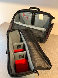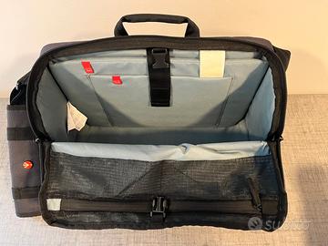 Messenger Manhattan Speedy-30 per DSLR/CSC In ottime condizioni, come nuova Borsa per fotocamera e laptop perfetta per le persone che sono sempre in movimento con il loro kit fotografico Inserto interno rimovibile che può contenere una reflex digitale media con obiettivo zoom standard montato più due obiettivi aggiuntivi ed accessori vari Divisori possono essere piegati o estratti facilmente Connessione per treppiedi esterna Vano per tablet e PC Attacco per trolley Due tasche esterne Cinturino di stabilizzazione Copertura antipioggia inclusa Materiale esterno: poliestere resistente all'usura e trattato per essere resistente all'acqua Peso: 1.07 kg Dimensioni Esterne: 43 x 16 x 30 cm Dimensioni Interne: 40 x 14 x 28 cm Custodia Fotocamera: 36 x 12.5 x 23.5 cm