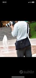 Tracolla monospalla del marchio Shootsac , per 3 obiettivi e diversi accessori come flasch, memory cards, batterie ecc…consente di portare e riporre in modo facile e sicuro fino a 3 ottiche e vari accessori, realizzato in soffice Neoprene anti graffio, resistente al acqua