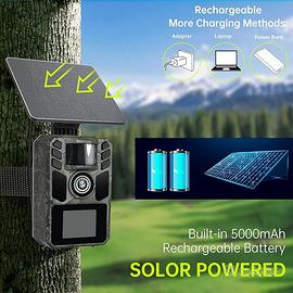 Perché sceglierlo: efficiente alimentazione solare e batteria integrata: dotato di un efficiente pannello solare e una batteria ricaricabile integrata da 5000 mAh per garantire un'alimentazione continua alla fotocamera, riducendo il problema di frequenti smontaggi e ricarica, che è ecologico ed economico.