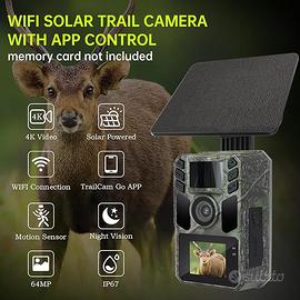 NUOVA E IMBALLATA Trail Camera 4K 64MP Solare WiFi Caccia Fotocamera con Visione Notturna