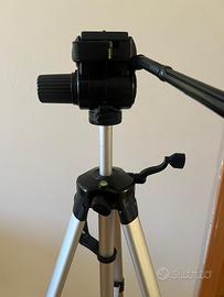 Descrizione: Tripiede per fotocamera, foto e video stabili. Altezza regolabile fino a 1,35 m. Leggero e facile da trasportare. In regalo anche un piccolo trepiedi portatile e borsa. In buone condizioni.
