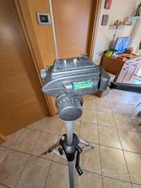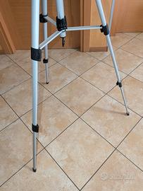 Vendo per disuso tre piedi in Alluminio regolabile su tre altezze come si vede in foto. Corpo centrale di ancoraggio per dispositivi regolabile in altezza. Testa di ancoraggio dispositivi ruotabile a 360°, altezza massima circa 160 cm.
