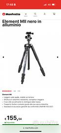Venfo trepiedi manfrotto Element MII nuovo mai aperto -Struttura in alluminio resistente, compatta e leggera con sacca per il traspoto Peso 1.55 kg Massima Altezza 160 cm Lunghezza Da Chiuso 42.5 cm Tipo Di Testa Testa a sfera Portata Di Sicurezza 8 kg Mi è stato regalato ma ne ho già 2 Prezzo poco trattabile