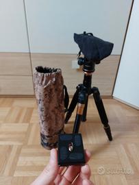 Treppiede compatto, leggero e portatile. Completamente in metallo, la marca è Andoer, ma ci sono molte marche simili su Amazon. Condizioni veramente buone, usato poco in quanto è utile principalmente per momenti buii, solo leggeri segni di usura con tutti i meccanismi ancora fluidi ed essenzialmente pari al nuovo. Includo sacca per il trasporto e copertura della testa per i graffi, compatibile anche per Arca Swiss. Spedizione a carico dell'acquirente e, in quanto si trovano simili modelli sui 65-70€, io applico un 50% di sconto, quindi prezzo non trattabile.