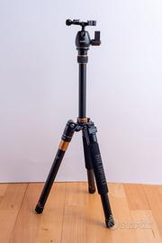 Vendo per inutilizzo treppiede da viaggio in alluminio Bildpro AK-236 con la testa a sfera in dotazione. Il treppiede è a 5 sezioni con sistema di apertura e chiusura twist&lock, il diametro della sezione maggiore è 23mm, quello della sezione minore è 12mm. Altezza massima 1,55m, si chiude ribaltando le gambe verso la testa e le dimensioni da chiuso sono di soli 32cm. La portata massima dichiarata è di 6kg, il treppiede pesa 1,13kg. Su due delle gambe è presente una copertura morbida in neoprene, mentre la terza (priva di copertura) può essere staccata dal treppiede ed essere utilizzata come monopiede, utilizzando la stessa testa del treppiede. Piedini in gomma.