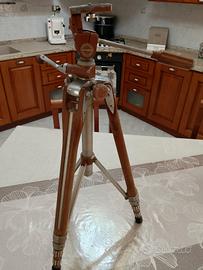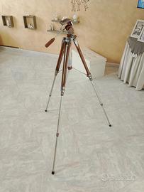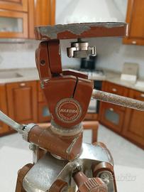 Questo oggetto è un treppiede fotografico d'epoca del marchio giapponese Hakuba, identificabile dal logo visibile nell'immagine. Marca: Hakuba, noto produttore giapponese di accessori fotografici. Caratteristiche: Struttura in metallo con finitura marrone e argento, dotata di testa panoramica e inclinabile per fotocamere. Stato: Oggetto vintage con segni di usura sulla vernice e sul metallo, indicativi dell'età e dell'uso nel tempo. Utilizzo: Progettato per stabilizzare fotocamere o videocamere durante le riprese.le misure sono:Treppiede lunghezza massima cm 128 media cm 93 chiuso cm 64.