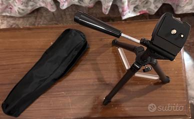 Treppiede per fotocamere e videocamere nuovo, ancora nella sua scatola, utilizzato solo una volta. Regolabile con tre altezze diverse, è dotato anche di una comoda custodia in tessuto. N.B.: foto dimostrativa, videocamera NON inclusa.