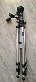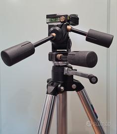 *Treppiede professionale Manfrotto Modello 074* in alluminio, colonna centrale a cremagliera e gambe in tre sezioni a sgancio rapido.