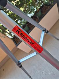 Vendo Bellissimo Treppiede Reporter Cod.00169 praticamente nuovo. Leggerissimo, completo di sacca per riporlo durante il trasporto. Misure di utilizzo da 56mm a altezza massima 155mm. Richiuso 59x9x10. Multipli modi e altezze di utilizzo. Prodotto originale.