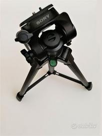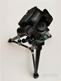 Treppiede in alluminio per macchina fotografica o fotocamera SONY VCT-R640 USATO; struttura telescopica da 55 cm. fino a 127 cm.+30 cm. a cremagliera; testa con attacco a sgancio rapido orientabile; livella. Come nuovo.