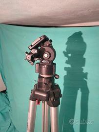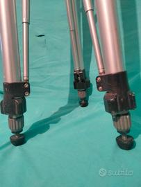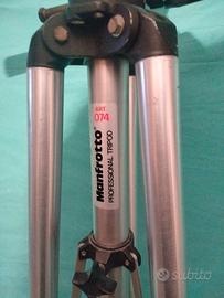 Treppiede Manfrotto 058 per fotocamere di medio e grande formato. È dotato di un sistema di regolazione rapida che permette di ho modificare l'altezza del treppiede in pochi secondi con un pulsante. Ha una colonna centrale autobloccante, angoli delle gambe regolabili individualmente e una posizione della telecamera estremamente bassa.