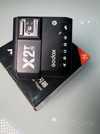 Trigger trasmettitore Godox XT2 per nikon perfettamente funzionante e completo di scatola. Rotto il dentino sportellino batteria. Da fissare con nastro come da foto 3. Vendo per passaggio a altro sistema.