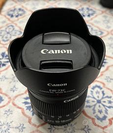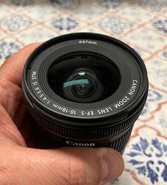 Vendo obiettivo Canon EF S 10 18 mm f/4.5 5.6 IS STM, ultragrandangolare originale Canon, ideale per paesaggi, architettura, interni e video. L’obiettivo è leggero e compatto, dotato di stabilizzatore d’immagine (IS) e motore STM per una messa a fuoco silenziosa e fluida, perfetta anche per riprese video. Compatibile solo con reflex Canon APS C con attacco EF S (non full frame). Caratteristiche principali: Focale: 10–18 mm (ultra wide angle); Apertura: f/4.5–5.6; Stabilizzatore ottico IS; Motore STM (autofocus silenzioso); Attacco Canon EF S; Filetto filtri 67 mm, Lenti pulite, nessun graffio, Sempre usato con cura: Incluso Paraluce EW-73C