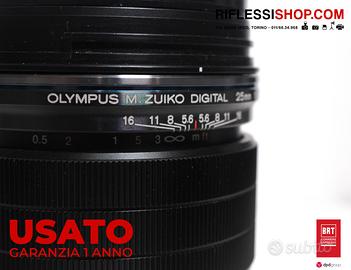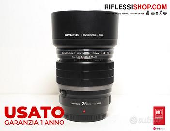 USATO OLYMPUS M.ZUIKO 25MM F/1.2 PRO OTTICA PER SISTEMA MIRRORLESS MICRO 4/3 (MFT) IN OTTIME CONDIZIONI. COMPLETO DI SCATOLA E ACCESSORI.
