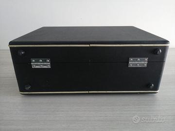 Valigetta vintage originale Canon in legno, buone condizioni, L 38 X H 15, P 28,5 cm, piccola imperfezione nel rivestimento visibile nell'ultima fotografia, chiavi non disponibili, altri accessori fotografici visibili sul mio profilo.