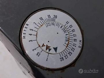 Vecchio flash portatile per fotografi professionisti con tracolla per il trasporto. apparecchio non testato , messo in vendita come visto e piaciuto . non saprei che tipo di batteria venivano inserite , forse quelle quadrate e piatte ( 2 o 3 ? ) . la cinghia per tracolla è in pelle vera , non rilevata nessuna marca . il materiale di cui è costituito sembra un policarbonato molto in uso in quegli anni . oggetto vintage forse anni 60 o prima . colore grigio .