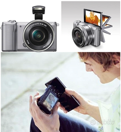 Vendo questa videocamera Sony Alpha 5000 usata poche volte, come nuova. Autofocus e manuale, borsa protezione, carca batterie e batteria. Un ottimo punto a favore di questa video camera, con cui si possono fare foto e video e' oltre alla qualità dell'immagine, la possibilità di ruotare lo schermo e il flash incorporato.