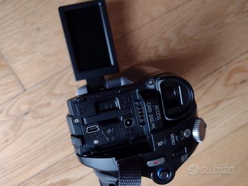 Videocamera Panasonic modello VDR-D 50 con scatola originale, completa di batteria, caricabatteria e cavi di collegamento alla TV e al PC. Zoom ottico 42x. Audio con microfono adattivo. Registra i video su MiniDVD anche riscrivibili (uno in omaggio). Manuale di istruzioni.