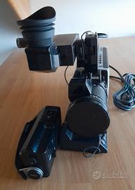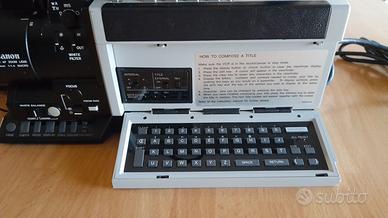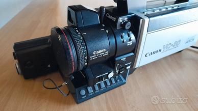 Videocamera vintage Canon professionale a colori degli anni ottanta con obiettivo zoom macro 8xf/1.4, ha un particolare generatore di caratteri sul pannello laterale per la composizione dei titoli, cavo in uscita per il connettore esterno che manca, il microfono extra è in pessime condizioni. Non è testata quindi non so se funziona. Per pezzi di ricambio o per collezionisti appassionati di storia del cinema. Compresa una borsa da fotografo con tracolla in materiale imbottito antiurto FIAB con ampio vano centrale e varie tasche in buono stato con qualche segno del tempo. Dimensioni 35x29x23