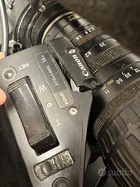 Videocamera JVC GY HM-750 completa di viewfinder e ottica CANON 14x. La video camera come dalle foto presenta dei lievi danni , display esterno non funzionante , tasto dei ,filter ND , bloccato. Spaccatura dalla parte dell’impugnatura dell’ottica(non per caduta della videocamera ) .