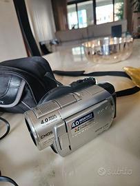 Direttamente dagli anni 2000, con questa videocamera Sony, potrai registrare ricordi con un look vintage, nostalgico e analogico. Sony DCR-DVD406E monta una lente Carl-Zeiss Vario-Sonnar T 5,4-54mm con apertura diaframma fino a f/1.8. Sensore CMOS ClearVid, 4.0 Megapiexels Still Image Recording, Display LCD 2,7″.