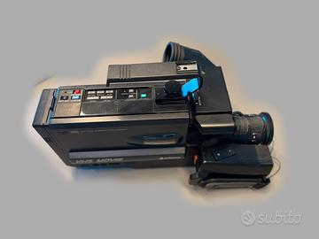 Funzionante Ottime Condizioni. Unici disguidi lo sportello si è bloccato e la batteria non tiene più la carica però funziona ancora. Usata con attenzione e tenuta in ambiente protetto e asciutto fino ad oggi. Completa di tracolla originale, teleobiettivo e grandangolo da aggiungere all'esistente, filtri grigio e giallo, caricabatterie, auricolare, presa inglese e borsone in pelle. Un appassionato o un collezionista può rendere questo gioiello della tecnologia video VHS di nuovo perfetto senza grandi difficoltà. Fantastico oggetto da esposizione o da arredo vintage, pezzo raro per veri amatori .