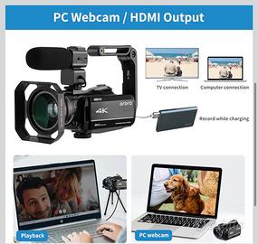 Videocamera digitale 4K 60FPS mai utilizzata, completa di accessori. Ideale per vlog, YouTube, viaggi, famiglia e streaming.