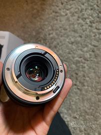 Lente Viltrox 20mm AF FE 2.8. Lente perfettamente funzionante. Nessun graffio sulla lente. Unici segni di usura sono sui tappi (foto 6) e sulla scatola (foto 1)