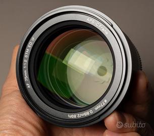 Eccellente obiettivo ultraluminoso Viltrox 75 mm 1.2 serie PRO, con attacco Sony E (formato APS-C).