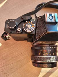 Vintage Chinon CX macchina fotografica a rullino pellicola funzionamento (non testato di recente con rullino ma funzionante fino a poco tempo fa) con custodia come in foto in vera pelle nera a clip removibile e tracolla. Made in Japan.