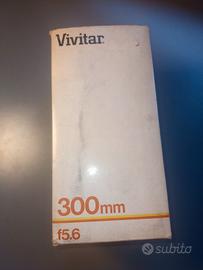 Obbiettivo Vivitar 300mm f/5.6, teleobiettivo manuale in ottime condizioni, ideale per fotografia naturalistica e sportiva con scatola originale.